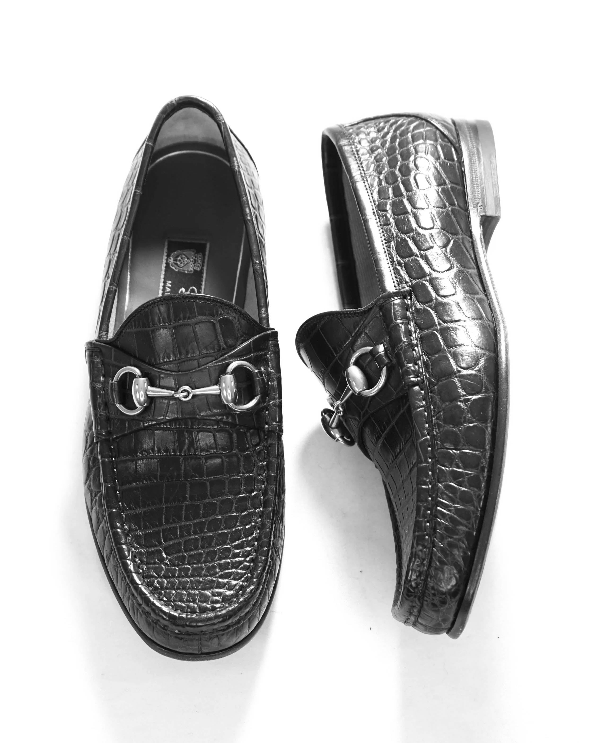 $4,300 GUCCI "JORDAAN" Crocodile Skin Black Loafers US 6.5 (6G)